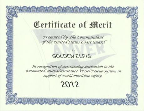 M/Vs ANDROUSA and GOLDEN ELPIS have been awarded with AMVER certificates for the year of 2012 for their contribution to the worldwide safety network in order to assist search and rescue coordinators in responding to emergencies at sea.